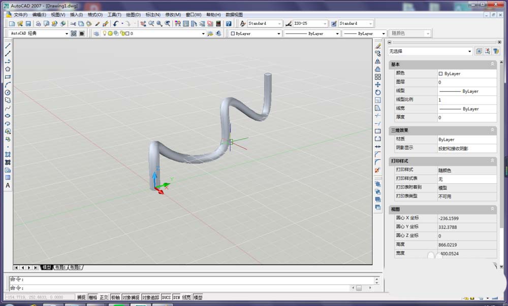7、第六步中選完路徑,掃掠就完成了,自動生成了如下圖中的實體。