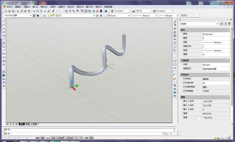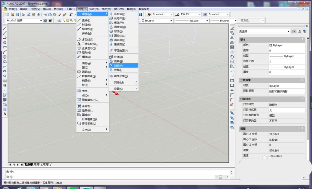 4、執(zhí)行【繪圖】-【建模】-【掃掠】命令。說明一下,因為筆者的電腦軟件是經(jīng)典模式,也沒有設(shè)置工具欄快捷圖標(biāo),所以只能用這種最原始的方式激活掃掠命令。