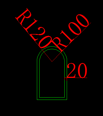 2、向內偏移20,并調用圓角,圓角半徑為100和120.