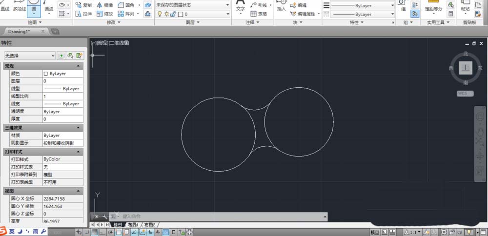 1、打開CAD軟件,如圖畫兩個相交圓,點擊圓角