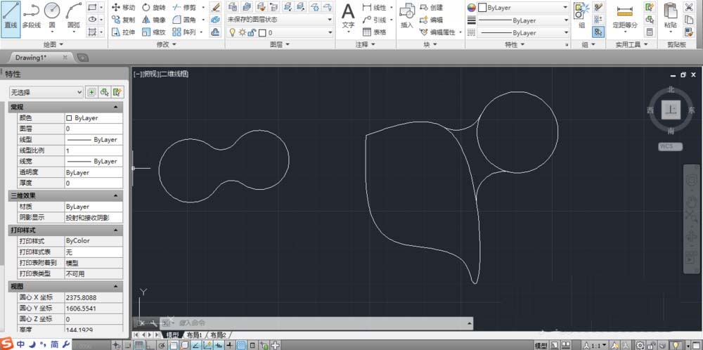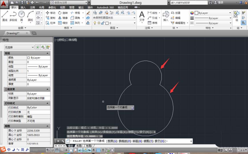 5、對于未相交的兩個圓或曲線,也可以用同樣的方法倒圓。