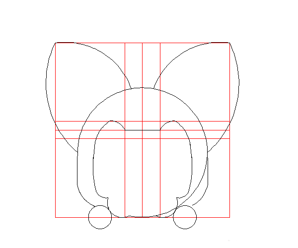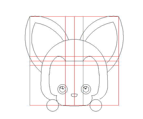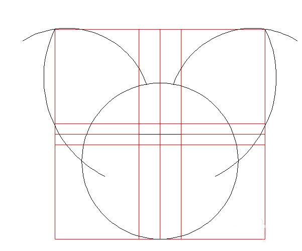 3、利用圓弧畫(huà)出阿貍外耳的輪廓,注意相交于輔助線角上最頂端那個(gè)點(diǎn)