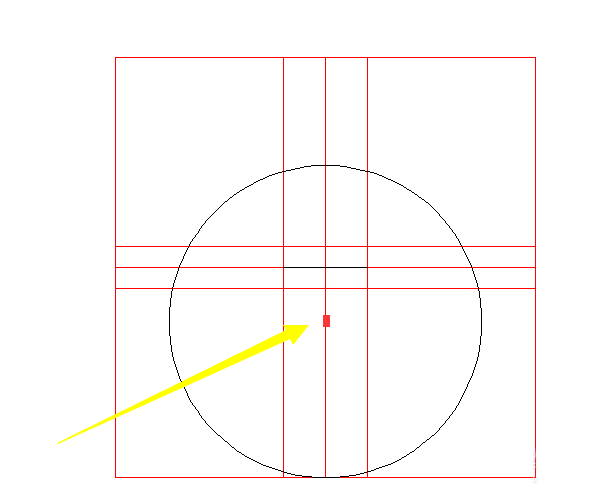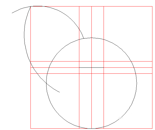 2、以圖中紅點(diǎn)位置為圓心畫(huà)圓(圓主要是為了確定阿貍的大腦袋的位置)