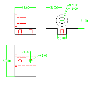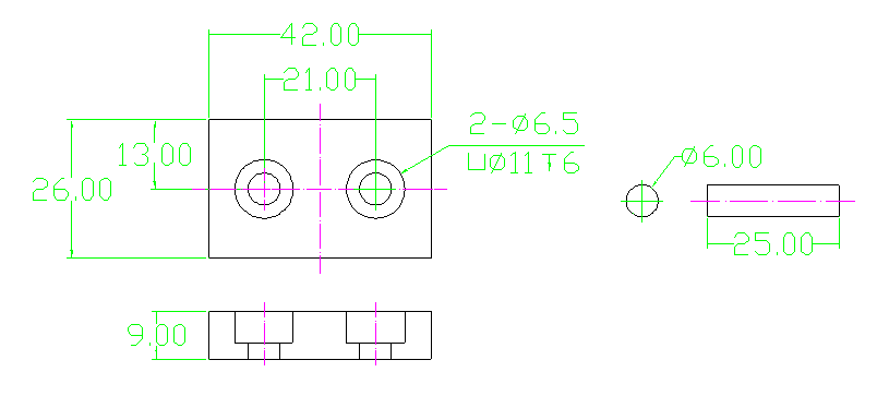 10、零件1已經(jīng)繪制完成了,接著繪制零件2,先繪制一個(gè)長(zhǎng)方體,再繪制出兩個(gè)圓柱體,移動(dòng)到相應(yīng)的位置,如圖所示