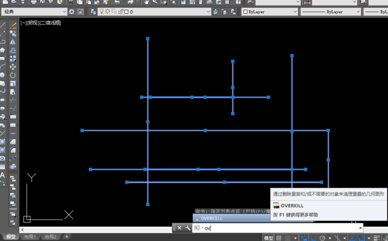 4、再輸入命令OV,命令欄就會自動彈出OVERKILL這個命令,接著按回車