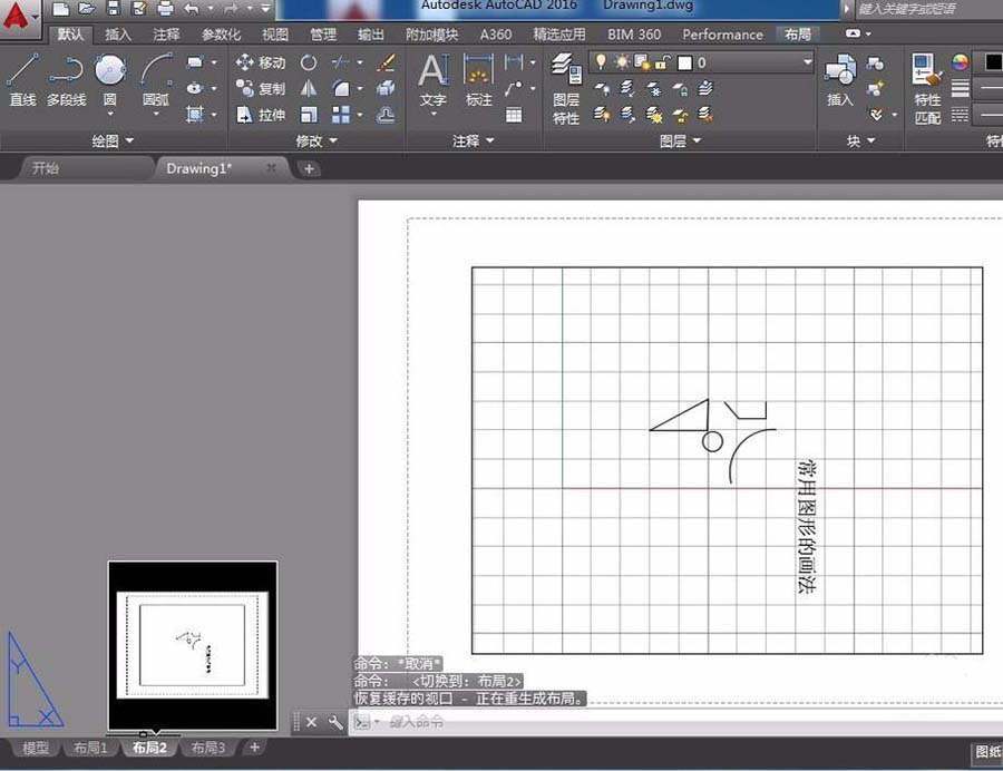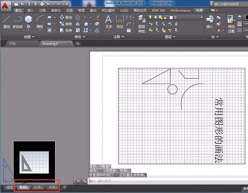 6、點擊左下角的“布局1”、“布局2”,此功能類似于EXCEL中的SHEET工作表,只不過每一個布局的背景不同而已。
