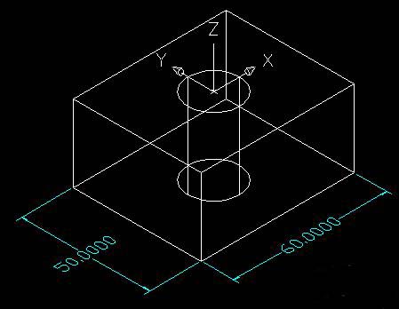 3、在命令行輸入ucs命令按空格鍵→輸入n按空格→在圓柱的上圓心點擊左鍵,就可以把坐標原點定在上圓柱的圓心。如圖所示