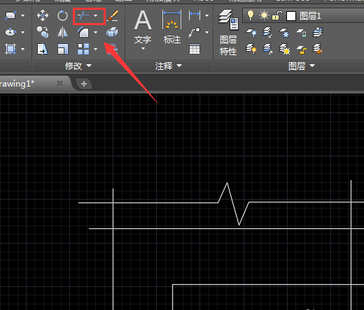 6、使用修剪命令將多余的線修剪掉,如圖所示: