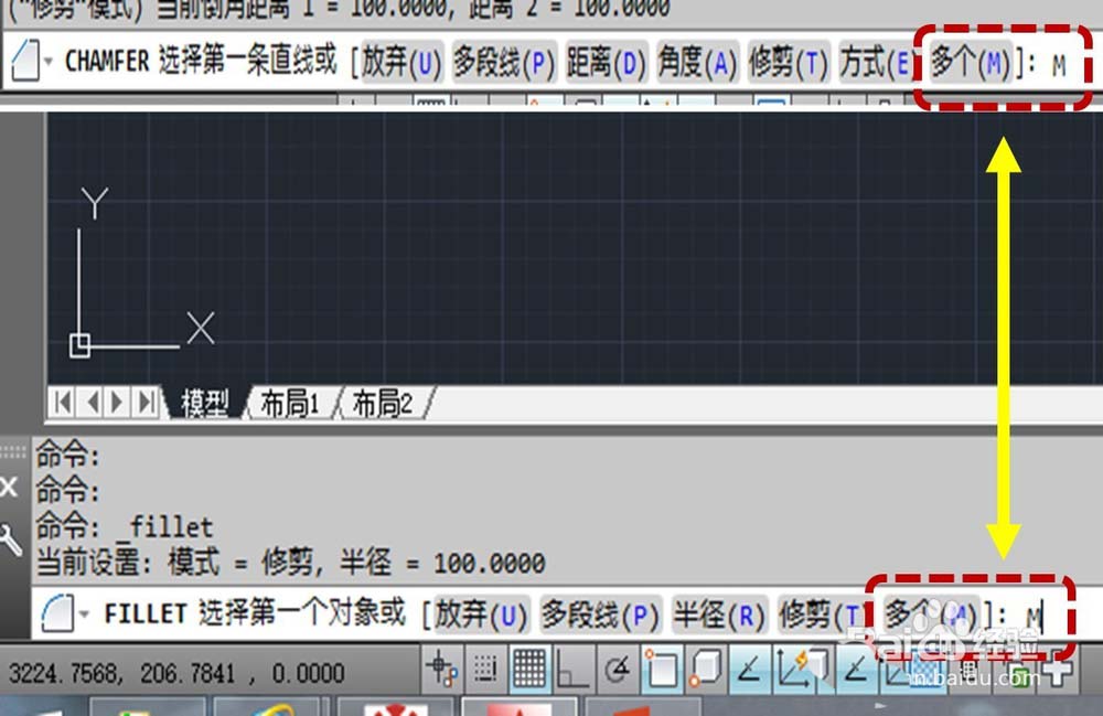 1、輸入圓角或倒角命令后,再輸入“M”