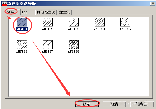 3、在彈出的圖案選項板中我們選擇ANST--ANST31號圖案。選擇后點擊確定。