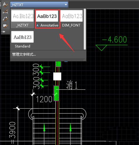 3、點擊注釋選項,在其下拉列表里找到文字樣式選項,如圖所示: