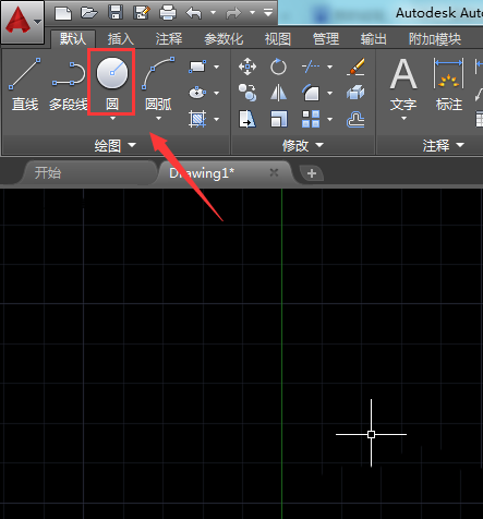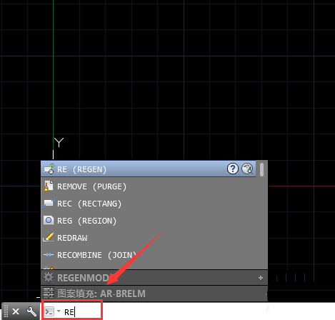 3、使用圓形命令,在繪圖區繪制一個圓形,再在命令輸入行內輸入re命令,如圖所示: