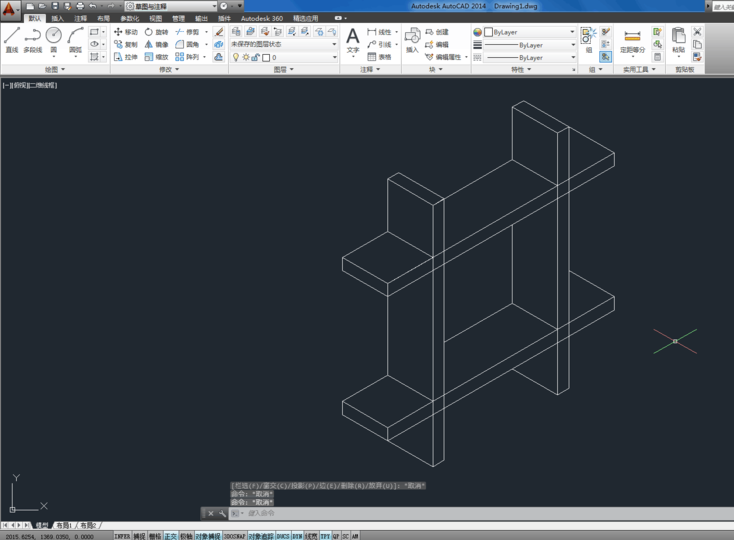 7、為了使其更加鮮明,可以在木板區(qū)域填充上顏色,如圖所示,這樣一個簡單的三維圖就畫好了,用的很簡單的“草圖與注釋”工作空間,是不是很有立體感呢