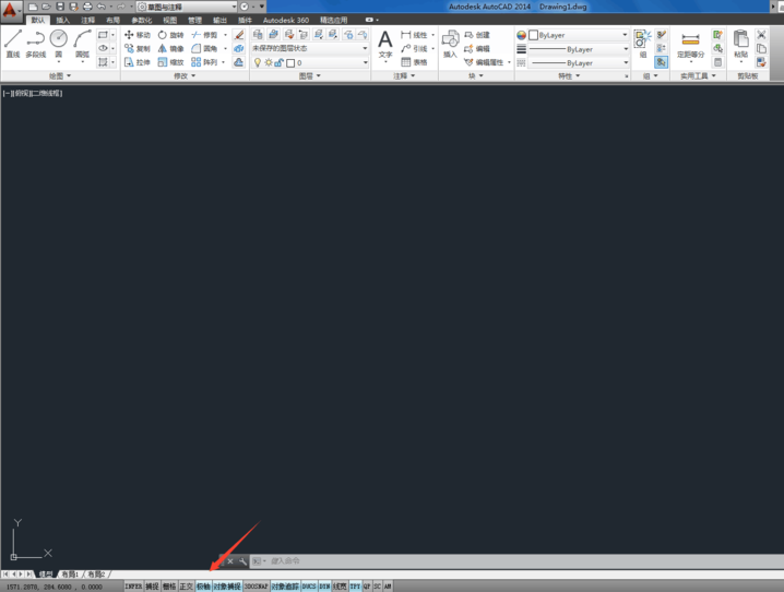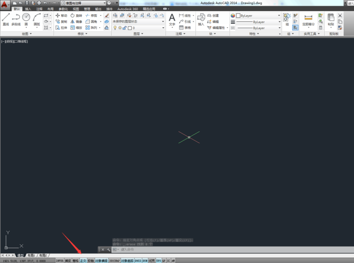 2、這時你就發(fā)現(xiàn)你的光標(biāo)變成了彩色斜交叉的狀態(tài),此時你的繪圖操作就變成了不同的視角狀態(tài),按F5可以切換左視,右視,俯視等狀態(tài)