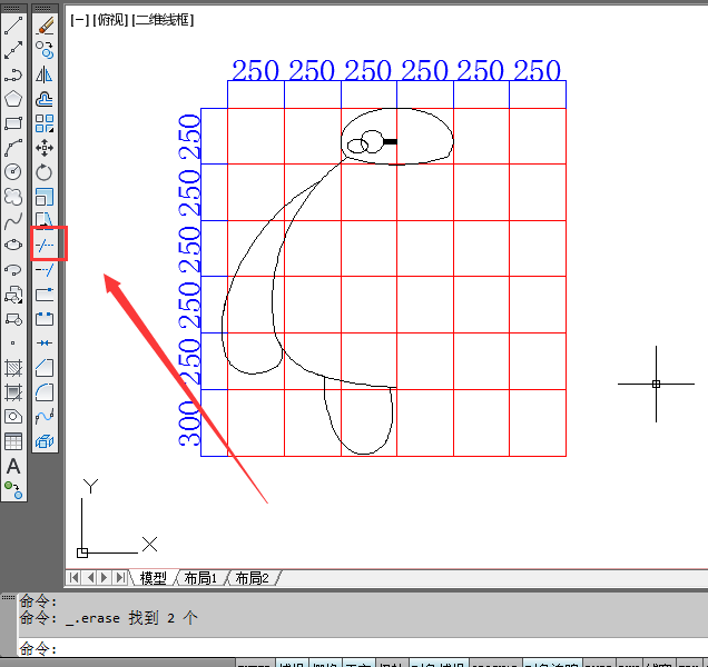 7、刪去多余的線段。點擊修剪工具,將多余線段刪除。