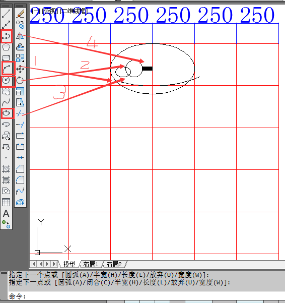 4、、頭部框架。點擊右邊橢圓工具。點擊頭部格子左邊中點偏下方,點擊頭部格子右邊中點偏下方,點擊頭部格子上方正中央,頭部框架搭好了。