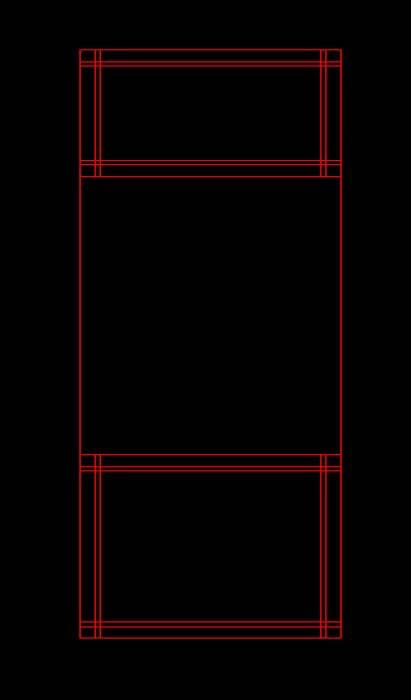 內線部分和外線是用同樣的方法,也是用偏移工具來完成的。只是雙線之間的距離要小一點,我們定為20mm。我們依次用偏移工具把固定部分畫好。畫好之后,我們看到固定邊角部分相交叉的地方感覺很亂,這個先不著急弄,等我們畫好扇后一起來處理。