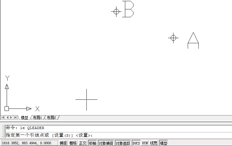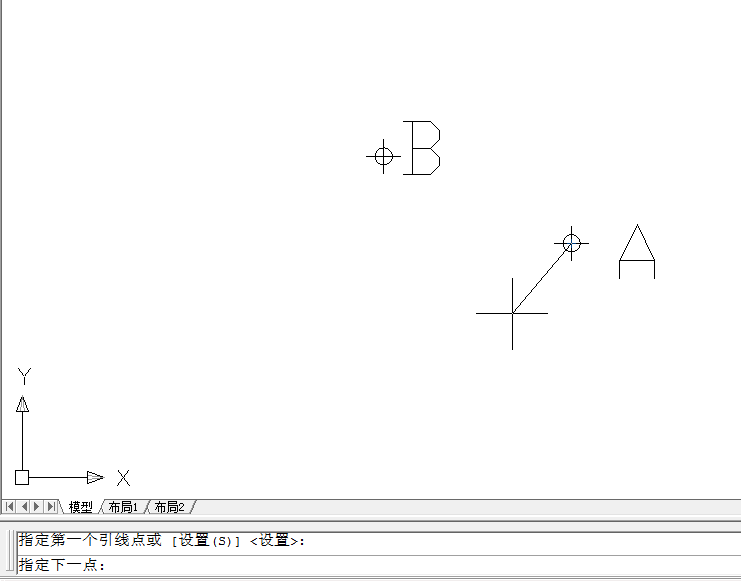 4、命令:LEADER,指定引線起點(diǎn):(選取圖中的A點(diǎn)作為引線起點(diǎn))