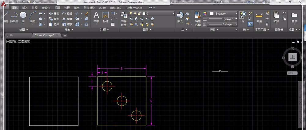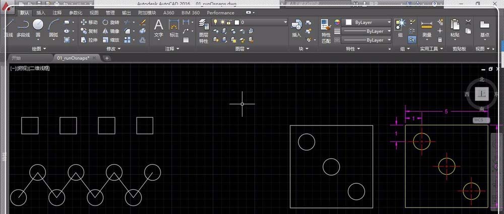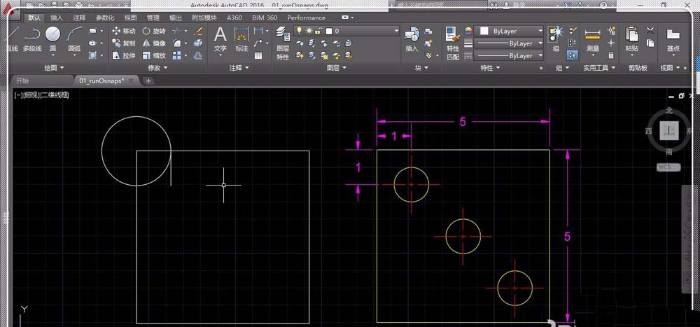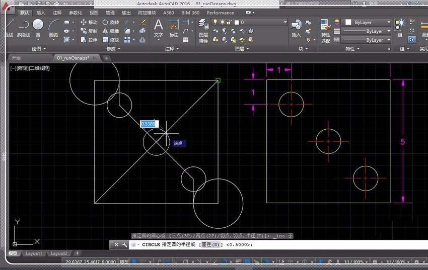6、下邊的圓也一樣,中間的圓關(guān)閉正交模式,后連接,確定中心畫圓就好。