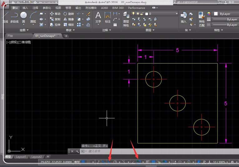 2、打開正交模式和對象捕捉命令,來畫這個圖