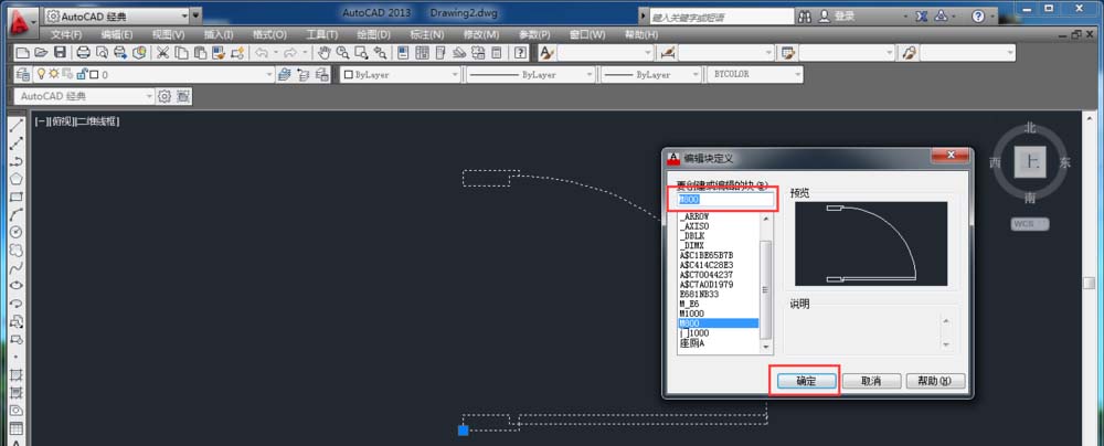 3、雙擊已經創建的塊,彈出塊“編輯塊定義”對話選擇框,選擇被編輯的塊,確定,如下圖: