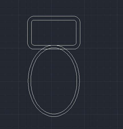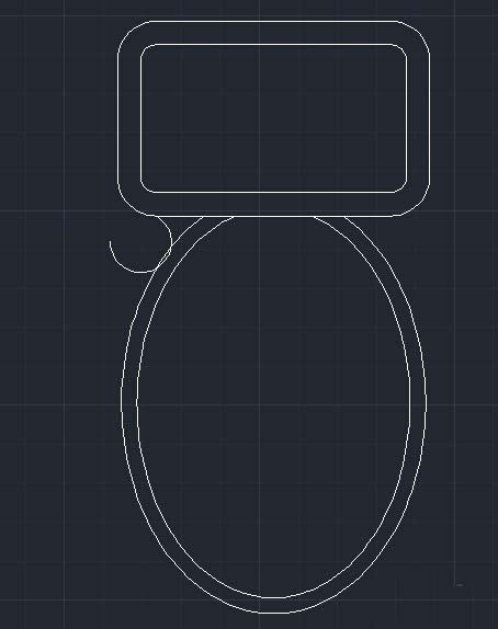 7、執行“圓弧”命令(A),過矩形左下側的點和橢圓上的一點繪制一條弧線,并將多余弧線進行修剪(TR)操作,最后執行“鏡像”命令(mi),將這條弧線水平鏡像到右側,至此,坐便器已經繪制完成。