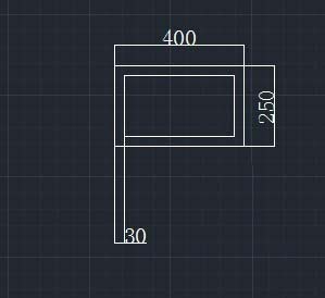 3、執行“矩形”命令(rec),繪制一個400mmX250mm的直角矩形;再執行偏移命令(O),將直角矩形向內偏移30mm.