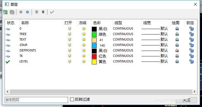 5、待打開“圖層”界面后,我們就可以看到不同顏色的線條所代表的具體含義了。如圖所示,根據(jù)圖層顏色可以在最左側(cè)看到相關(guān)說明文字。