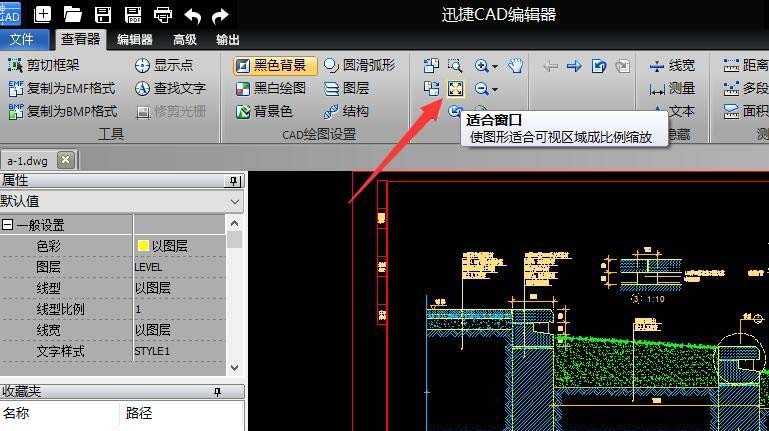 3、待打開相應(yīng)的CAD圖紙文件后,在“查看器”功能區(qū)點(diǎn)擊“適合窗口”按鈕,將自動(dòng)以最佳方式顯示圖紙內(nèi)容。