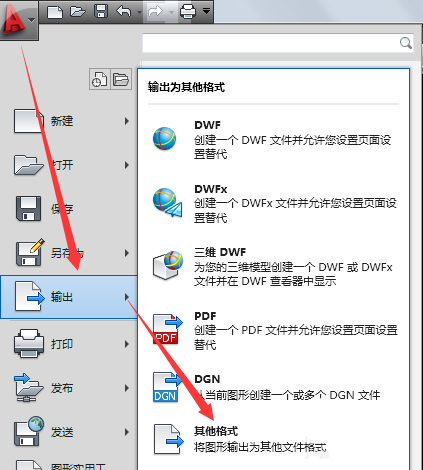 1)在CAD中,左上角“A”字下拉菜單 -> 輸出 -> 其他格式,打開【輸出數據】對話框,輸出WMF文件。