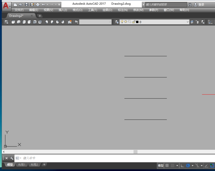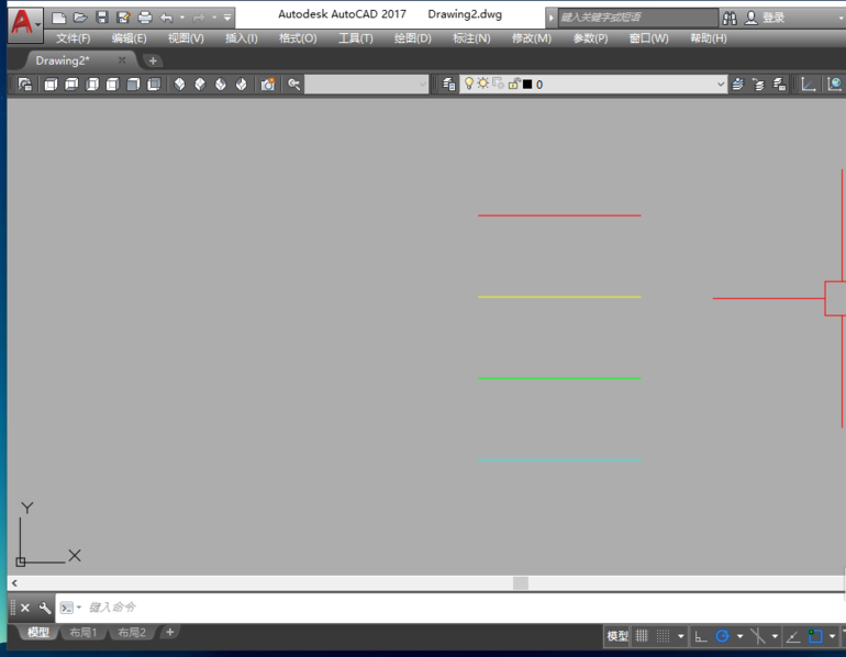 5、回到圖紙空間中,繪制四條直線。然后我們再給每條直線指定一個圖層。