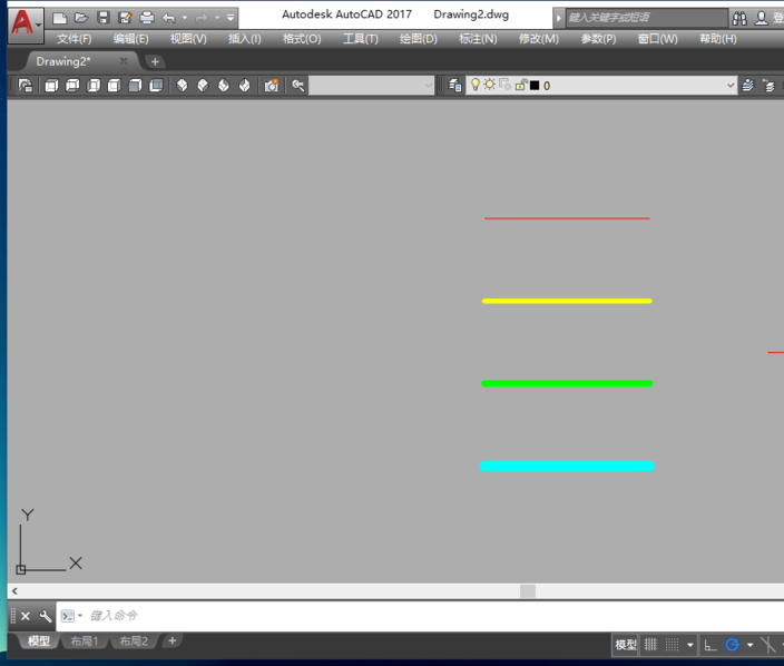 6、指定完圖層之后,我們發現,線段并沒有出現粗細差異,這是因為沒有顯示線寬的原因。