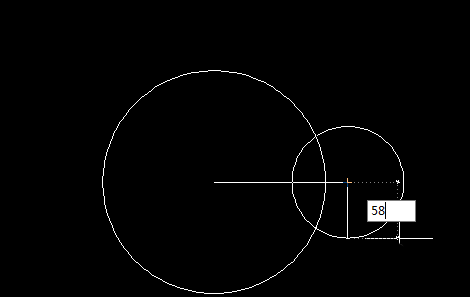 4、同樣的方法,以長度為63的線段的另一個端點為圓心,畫一個半徑是58的圓。如下圖