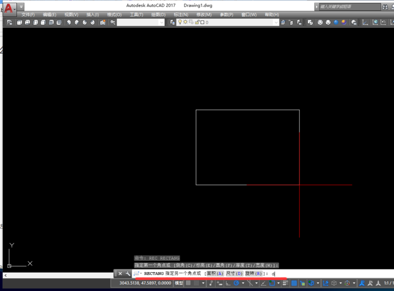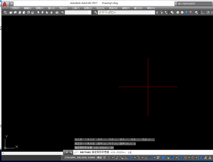 2、選擇一點(diǎn)之后,命令行輸入“d”-“空格”;設(shè)置矩形的長和高,這里為40×10,然后點(diǎn)鼠標(biāo)左鍵,完成矩形繪制