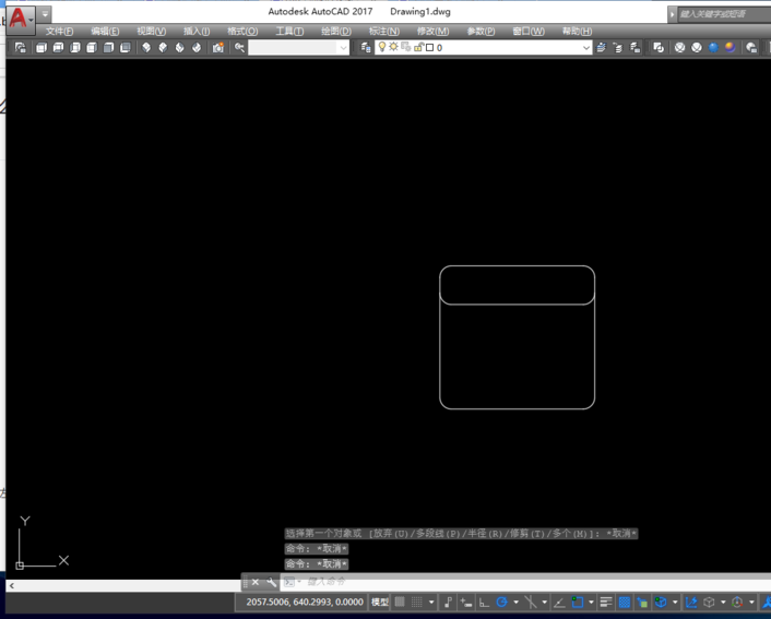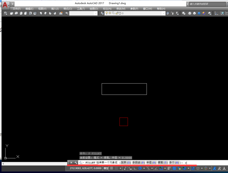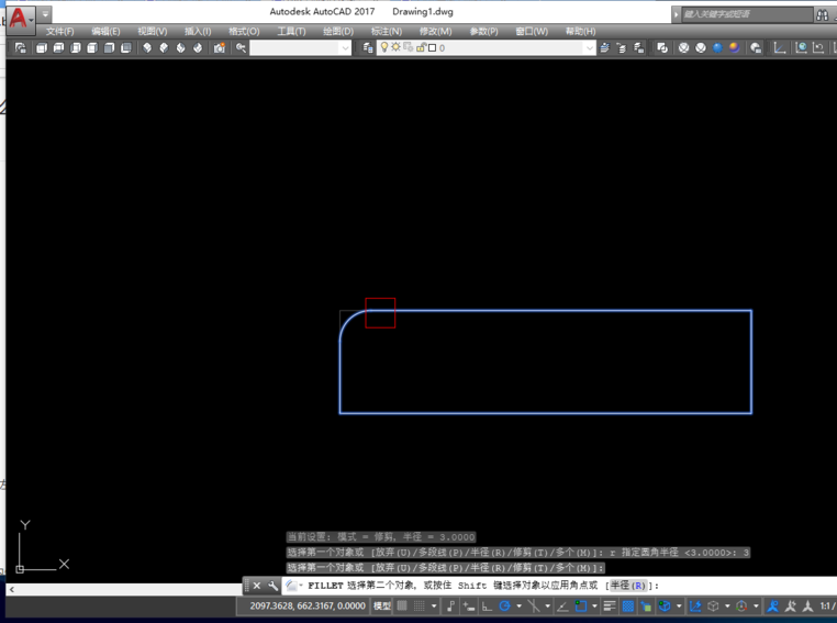 4、繪制圓角,命令行“f”-“空格”,鼠標(biāo)左鍵選取要圓角的兩邊,分別單擊,完成繪制,四個(gè)角同理