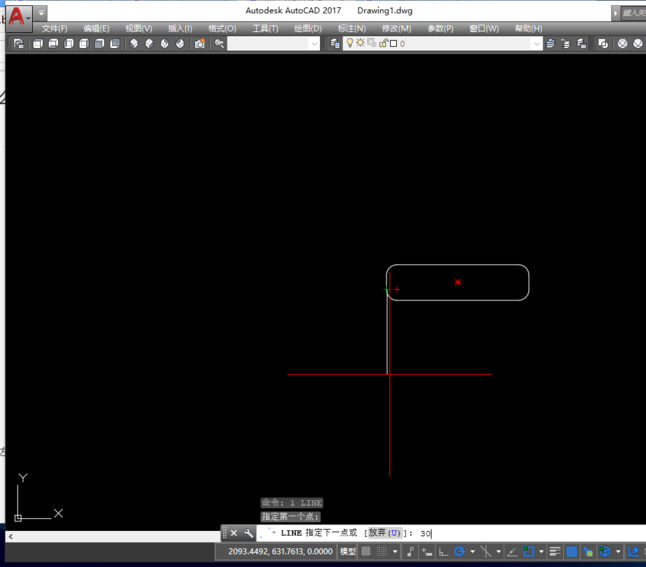 5、繪制直線,命令行“l”-“空格”,以矩形邊上一點(diǎn)為起點(diǎn),繪制直線,這里直線長度為30,