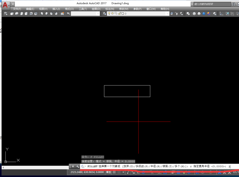 3、繪制完矩形之后,再繪制圓角,首先設(shè)置圓角半徑,命令行“f”-“空格”-“r”-“空格”,輸入圓角半徑,這里輸入半徑為3,然后再“空格”