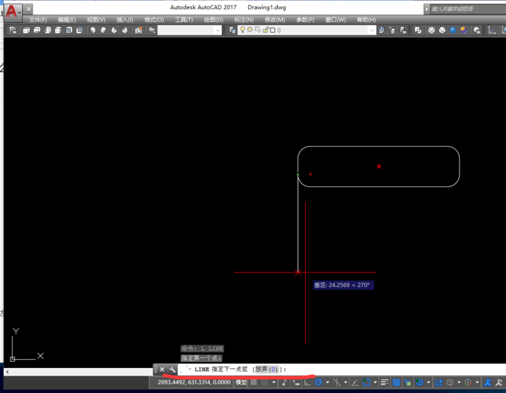 6、將線段連接之后,成一矩形,再對這個(gè)矩形倒圓角