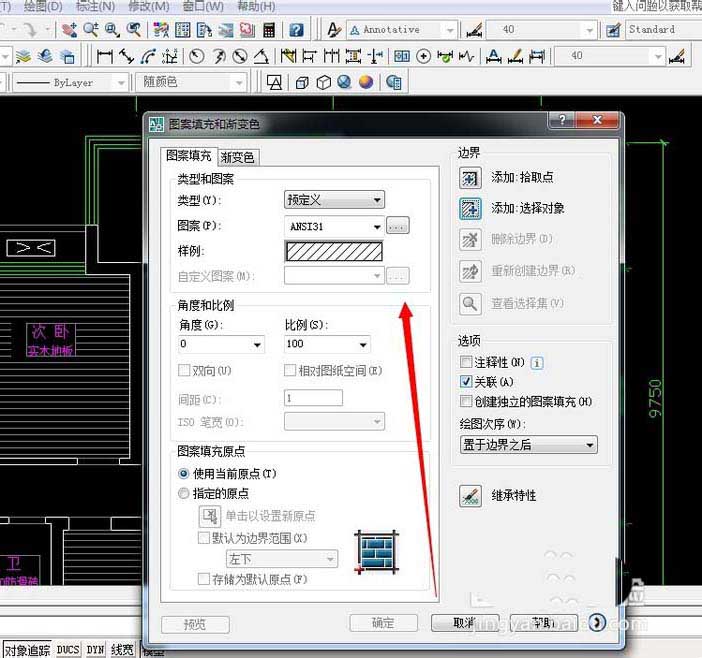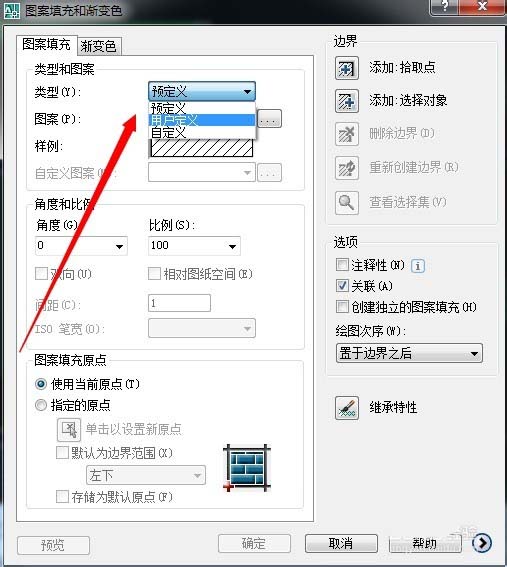 2、查看“圖案填充”--類型和圖案--類型--用戶定義,如圖:
