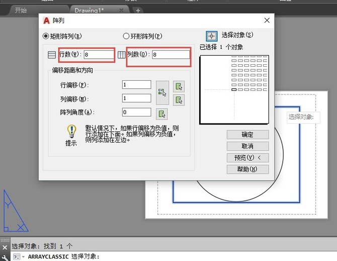 3、視口可以用命令VPORTS創(chuàng)建,也可以用常規(guī)的復制、陣列命令添加。下面我們將用陣列快速創(chuàng)建多個視口。如果你的CAD版本比較低,可以直接用陣列AR命令,如果用的是CAD高版本,陣列功能無法復制視口,需要用ARRAYCLASSIC命令調用經典的陣列對話框。單擊選擇視口,執(zhí)行陣列命令,打開陣列對話框,將數量設置成8X8,如圖所示。