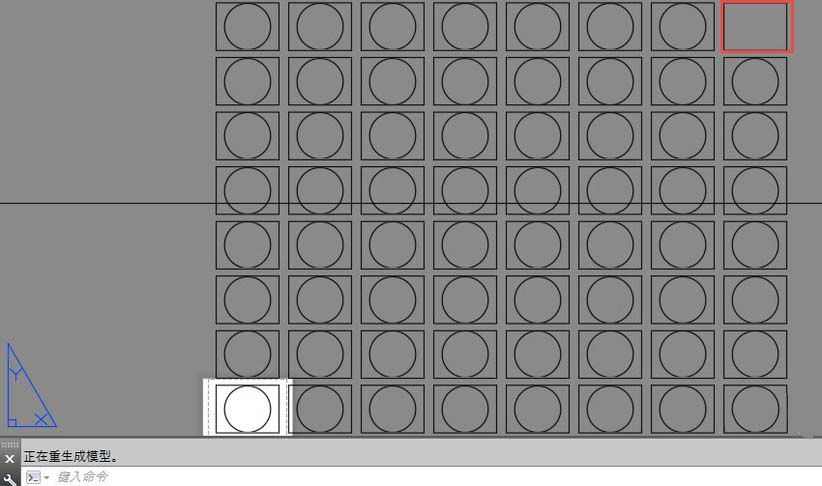 5、單擊確定按鈕,陣列生成64個視口。雙擊鼠標中鍵,顯示所有視口,我們看看視口顯示的效果。我們可以看到右上角的視口顯示空白了,從此我們也知道CAD中最多可以顯示63個視口。如果我們的布局中有視口顯示空白,我們就需要檢查一下我們的視口是不是太多了。有時看到某些圖紙的布局中視口并沒有那么多,但仍有視口沒有顯示,原因通常是類似的,只是人為修改了激活視口數量的限制。