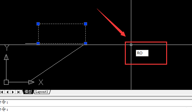 1、首先選中矩形,快捷鍵ro,空格鍵,如圖所示