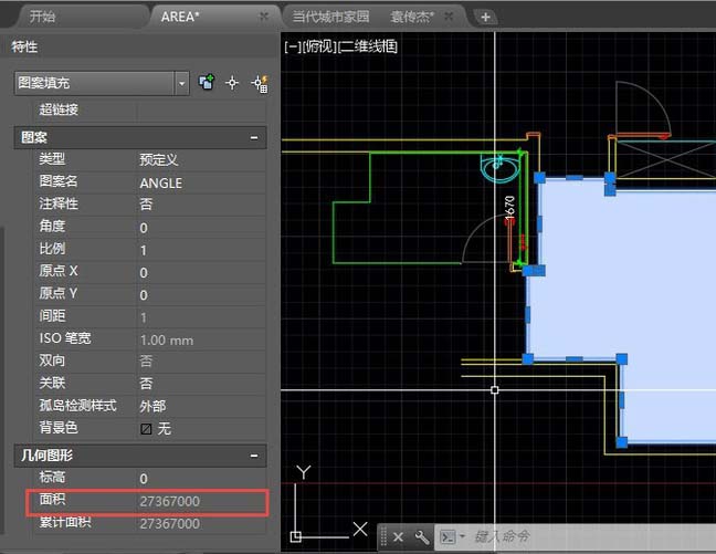 2、當創建填充后,我們可以通過特性面板(CTRL+1)和查詢LI命令來獲取填充的面積。選中填充,按CTRL+1打開特性面板,找到面積,如圖所示。
