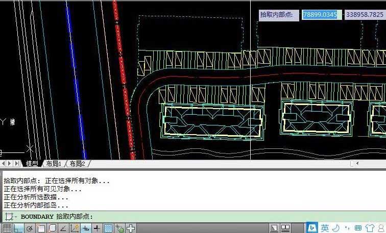 4、按照命令行提示,拾取內部點,鼠標左鍵單擊要生成閉合多段線的內部區(qū)域。