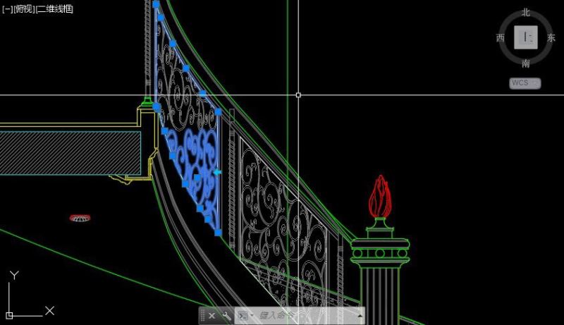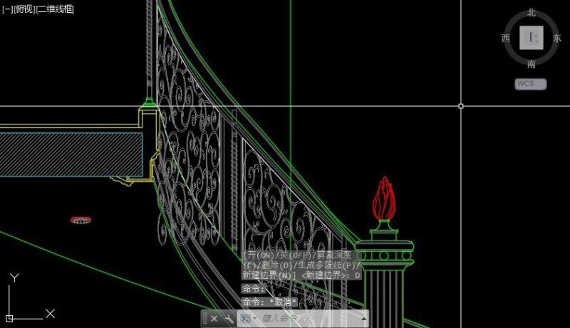 選擇欄桿中的一段鐵花,查看裁剪的邊界,輸入XCLIP,回車,輸入D,回車,將邊界刪除,看看原始圖塊是什么樣的。