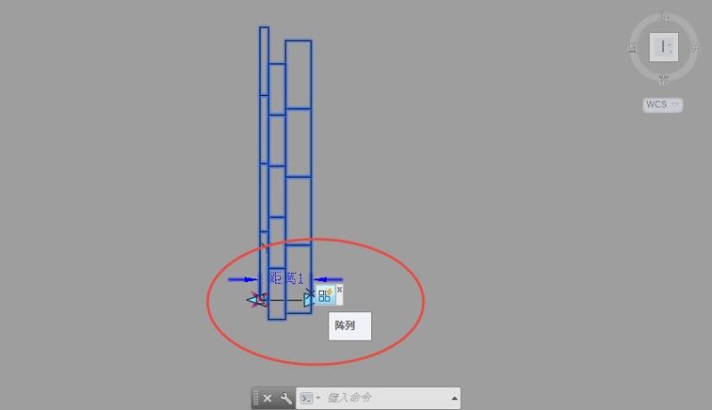 4、這個圖塊還不是普通的圖塊,繪圖者為何適應不同區域的大小,并沒有簡單地將單元陣列幾個,做成一個固定的圖塊,而是將一個單元圖塊后,設置了一個陣列的動作,如果墻面較寬,拉動夾點就可以多個單元,如果墻面較窄,就可以少幾個單元。