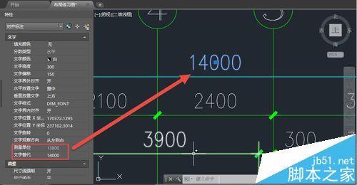 1、選中標(biāo)注后,在特性面板(CTRL+1)中直接填寫文字替代的值,如下圖所示。