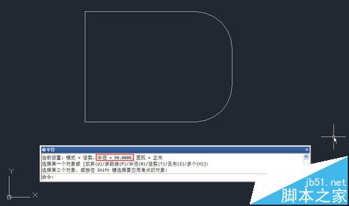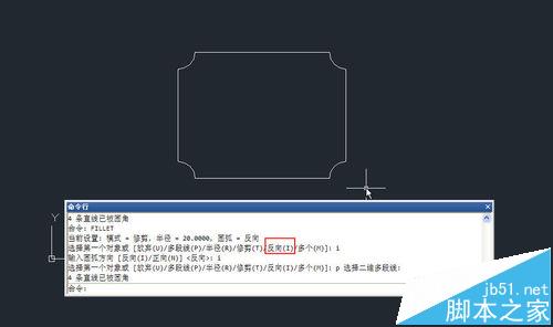 2、輸入F,回車,輸入R,回車,輸入50,回車,輸入P,回車,命令行會提示讓選擇多段線,單擊繪制好的多段線,將一次性生成所有圓角