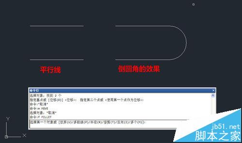 1、我們不僅可以對相交的線進行倒圓角,平行線也可以倒圓角,會自動用半圓將平行線連接起來,無需設置倒角半徑,如下圖所示。