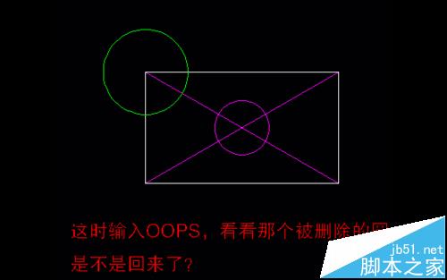 注:使用OOPS命令還有一個禁忌就是中間不能使用過U、UNDO、CTRL+Z命令;OOPS命令在每次刪除命令后只能用一次恢復,再用則無效。